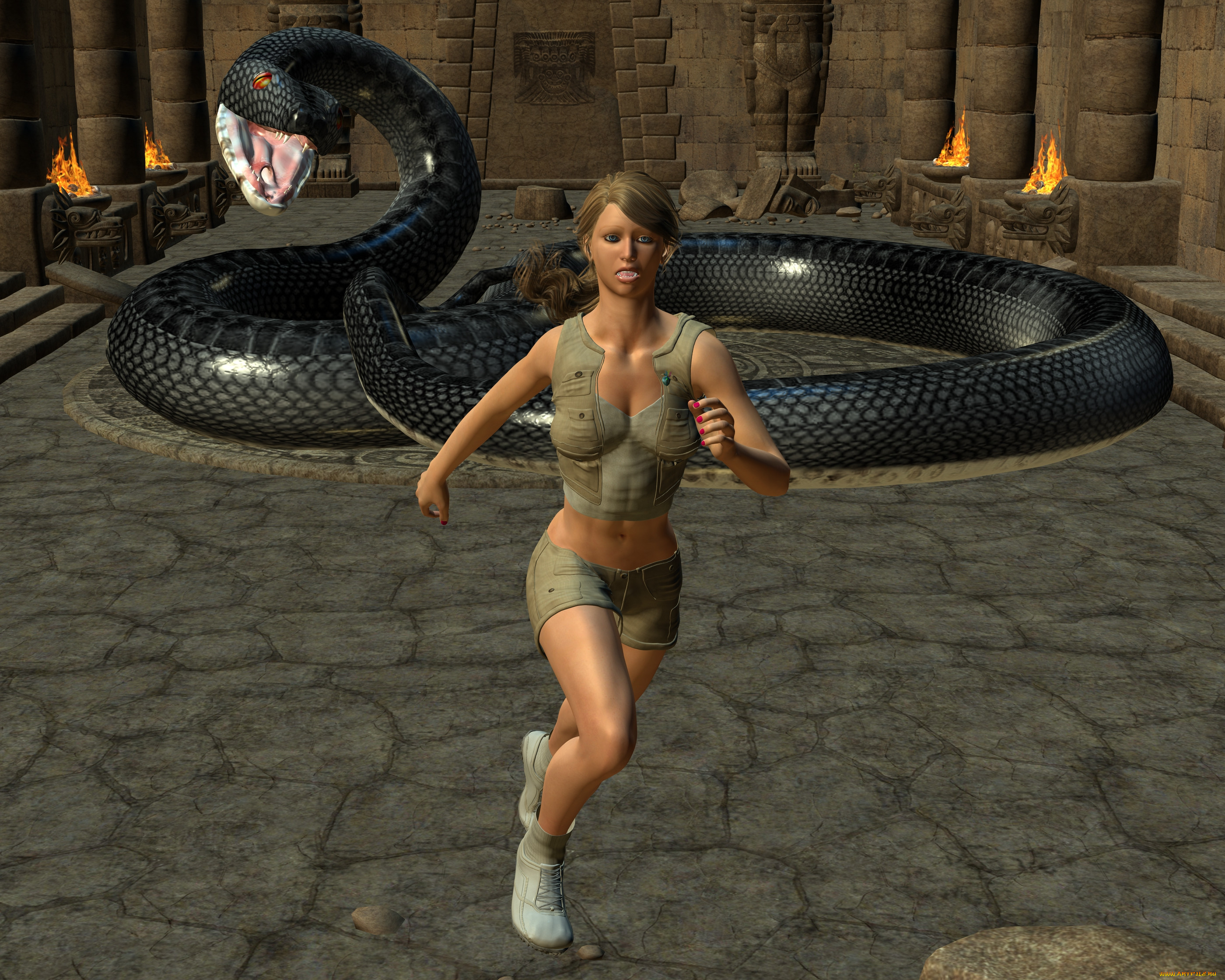 Змея проглатывает девушек