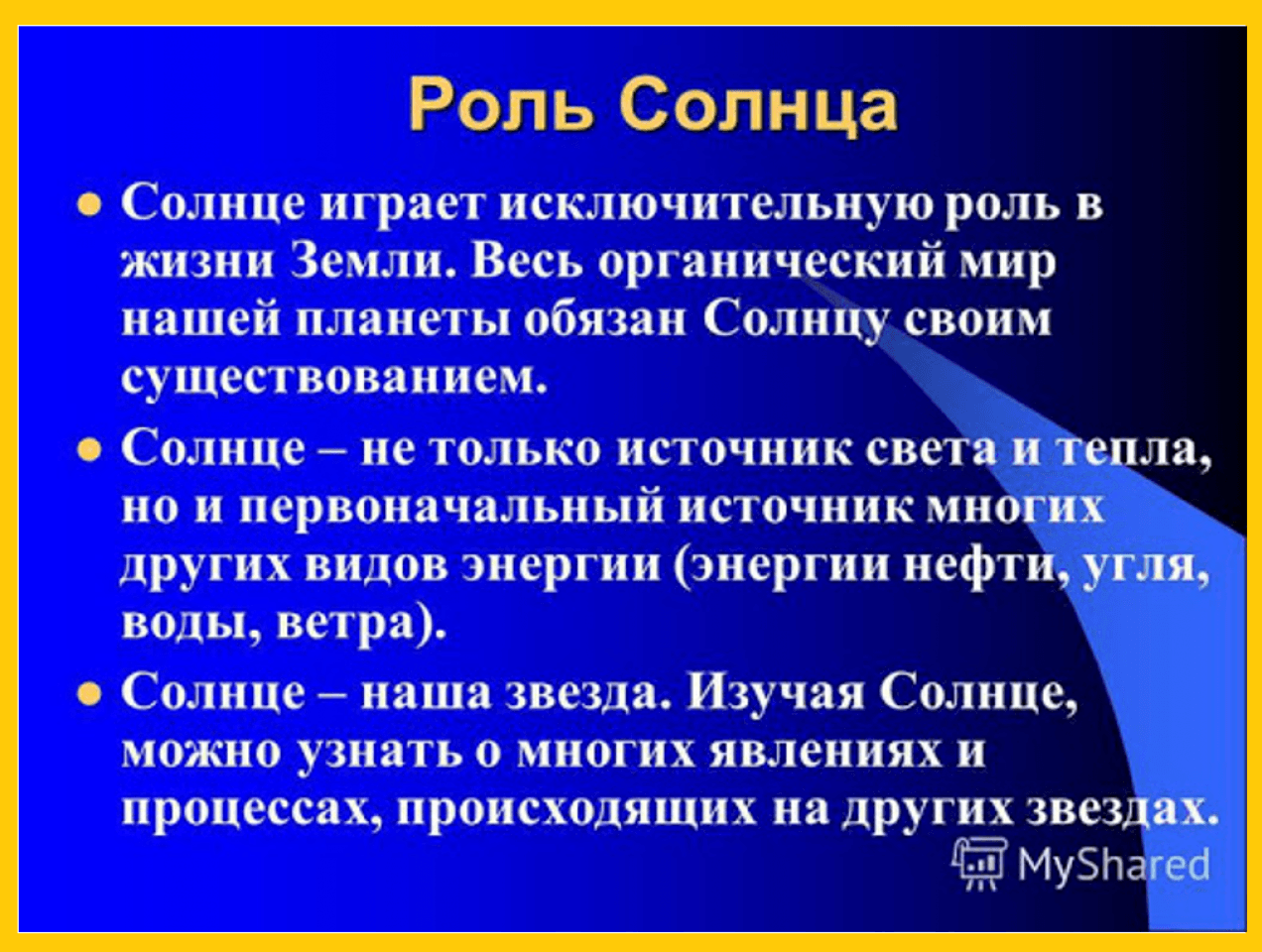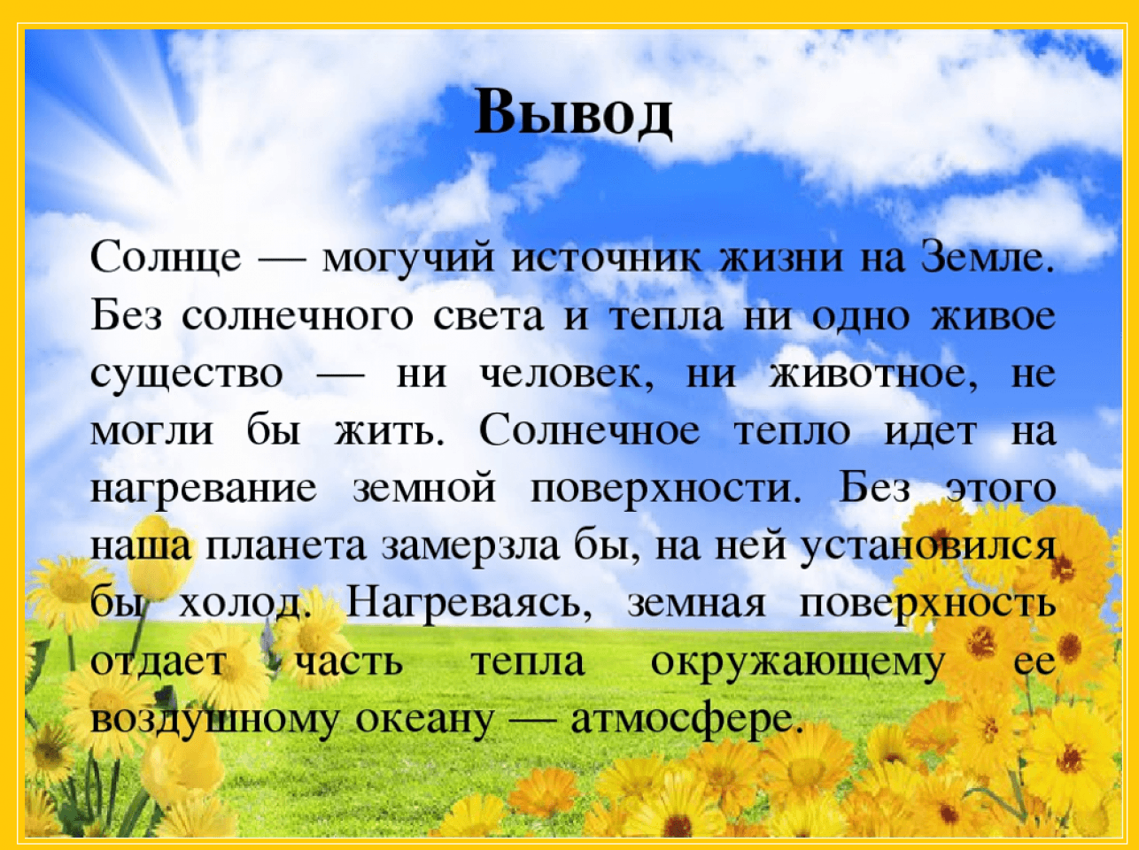Значение солнца 2 класс