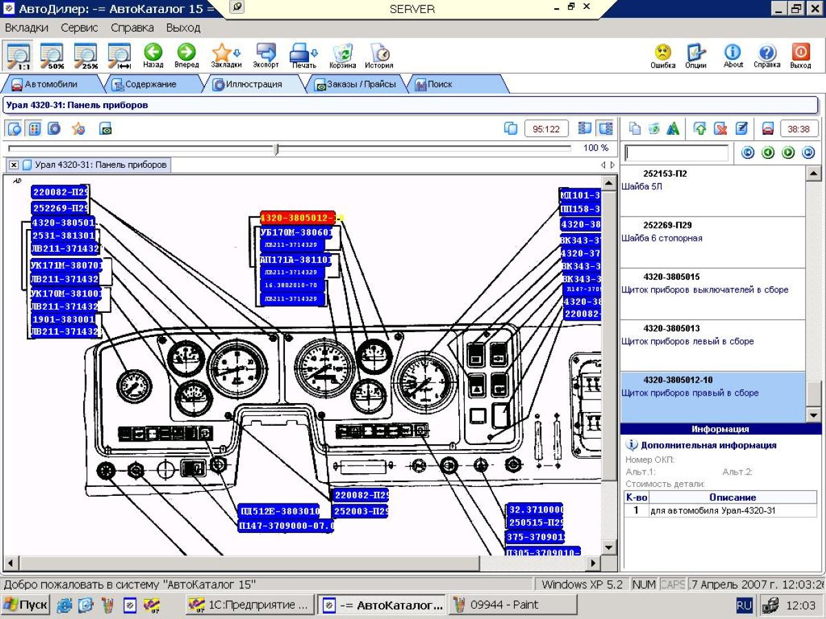 Значки на панели урал