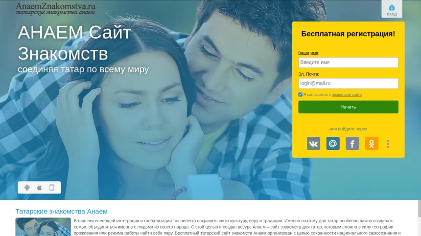 "АНАЕМ" - татарский сайт знакомств для серьезных отношений . . .