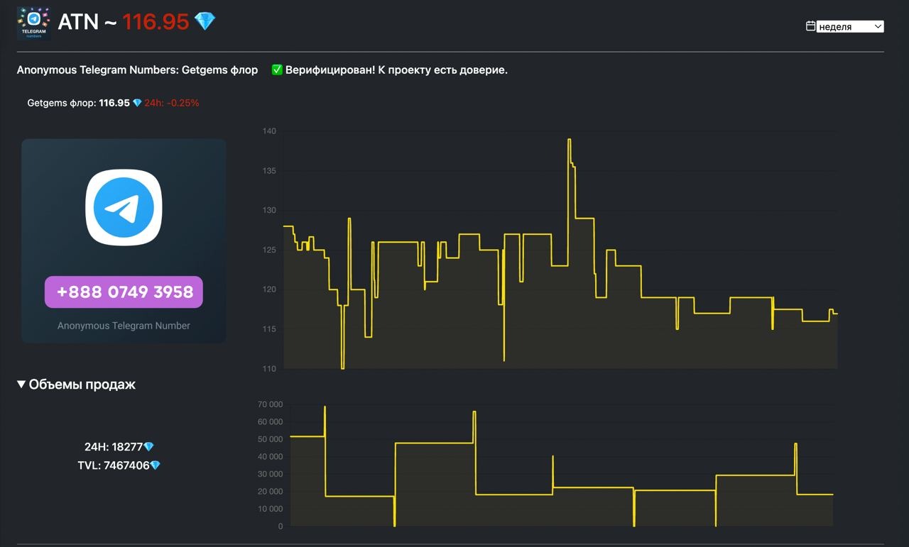 При анализе NFT коллекции очень удобно сразу просматривать объемы продаж и изменение цены также за день/неделю или месяц.