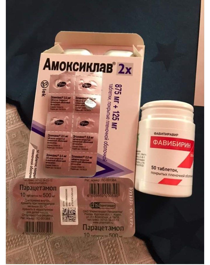 На фото - парацетомол, амоксиклав, эливис, фавибирин.