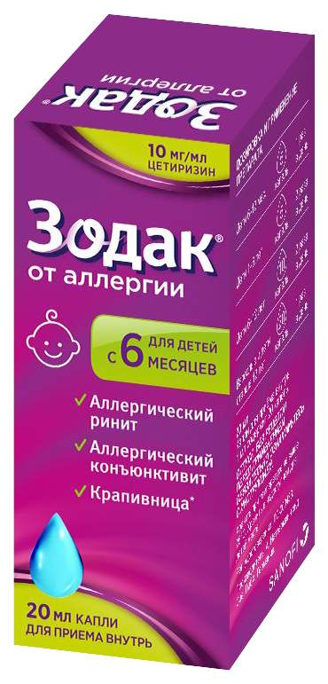Зодак капли для приема внутрь 10 мг/мл, 20 мл - купить . . .