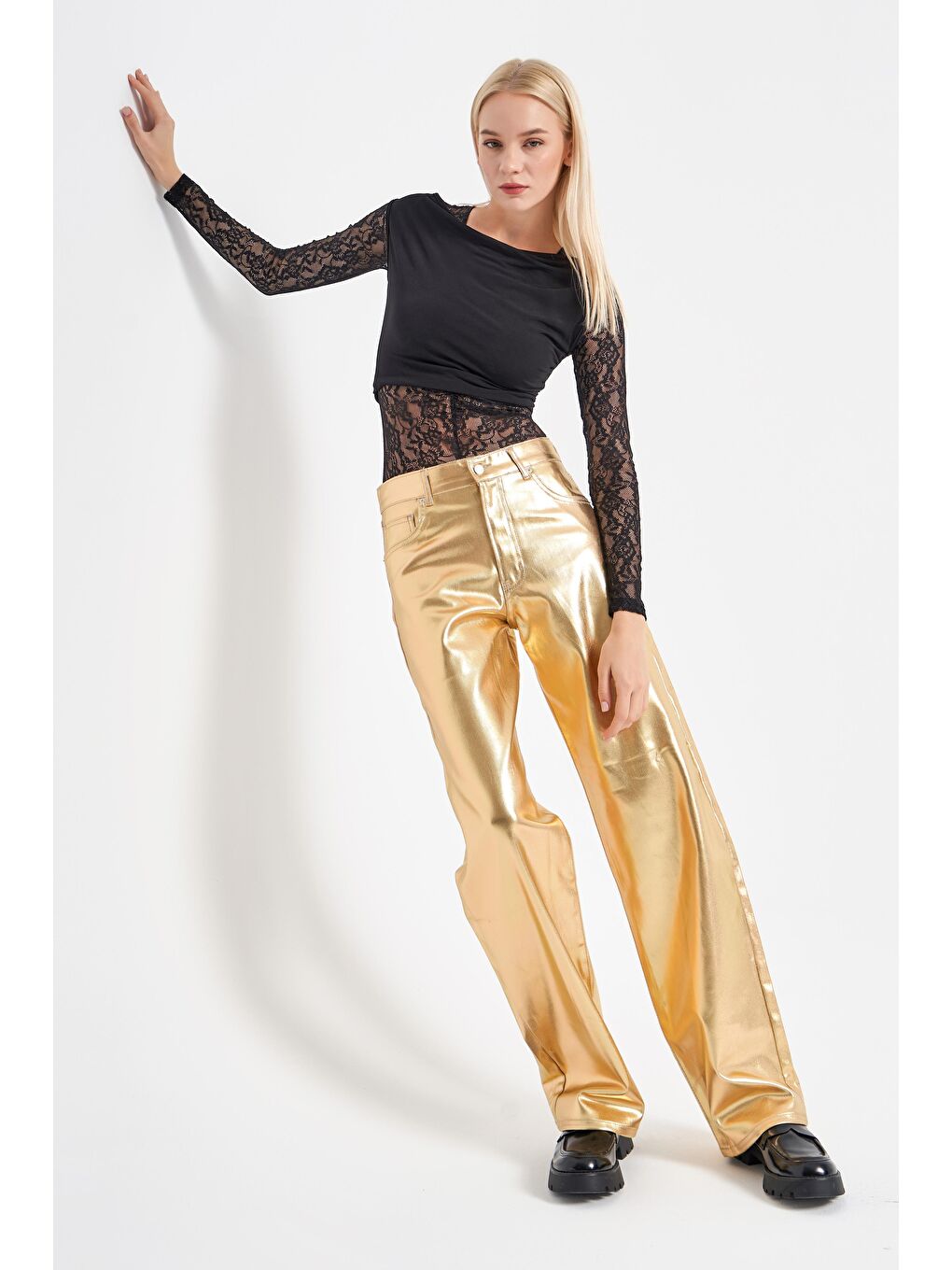 Золотистые брюки 85 фото