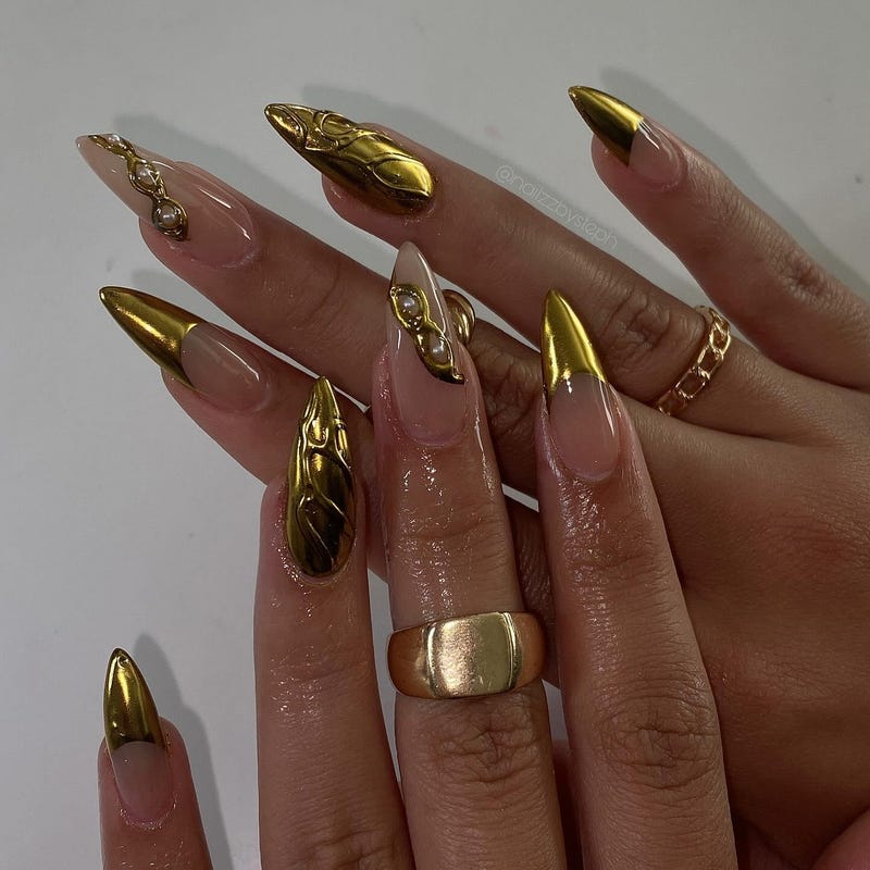 Золотые Ногти Фото 176 фотографий