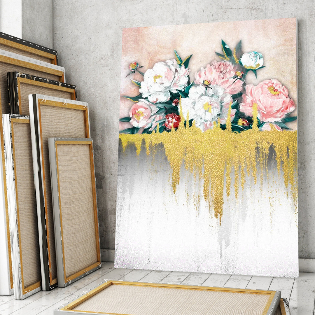 Свое фото . Если вы не нашли подходящего изображения в каталоге, вы можете отправить нам свое фото и мы изготовим фотообои на его основе . . . . Золотые пионы Нежные розовые цветы с жемчугом 3Д . . .
