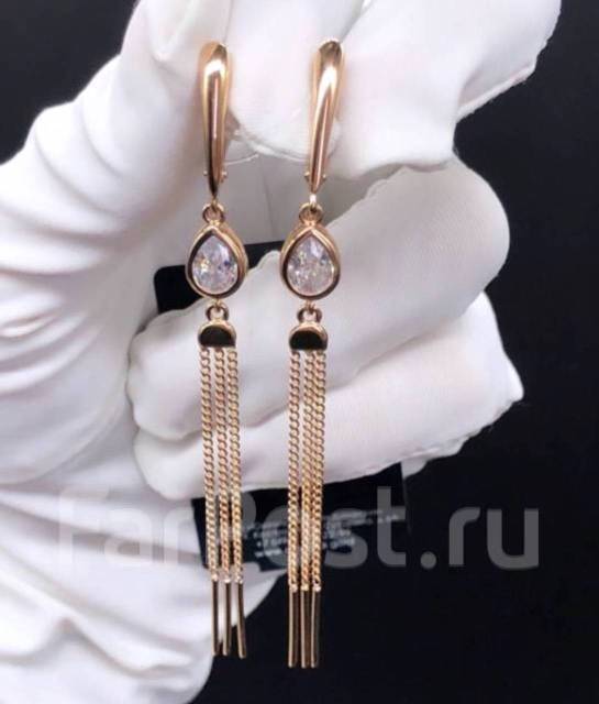 Золотые серьги цепочки (47 фото): сережки в виде цепи . . .