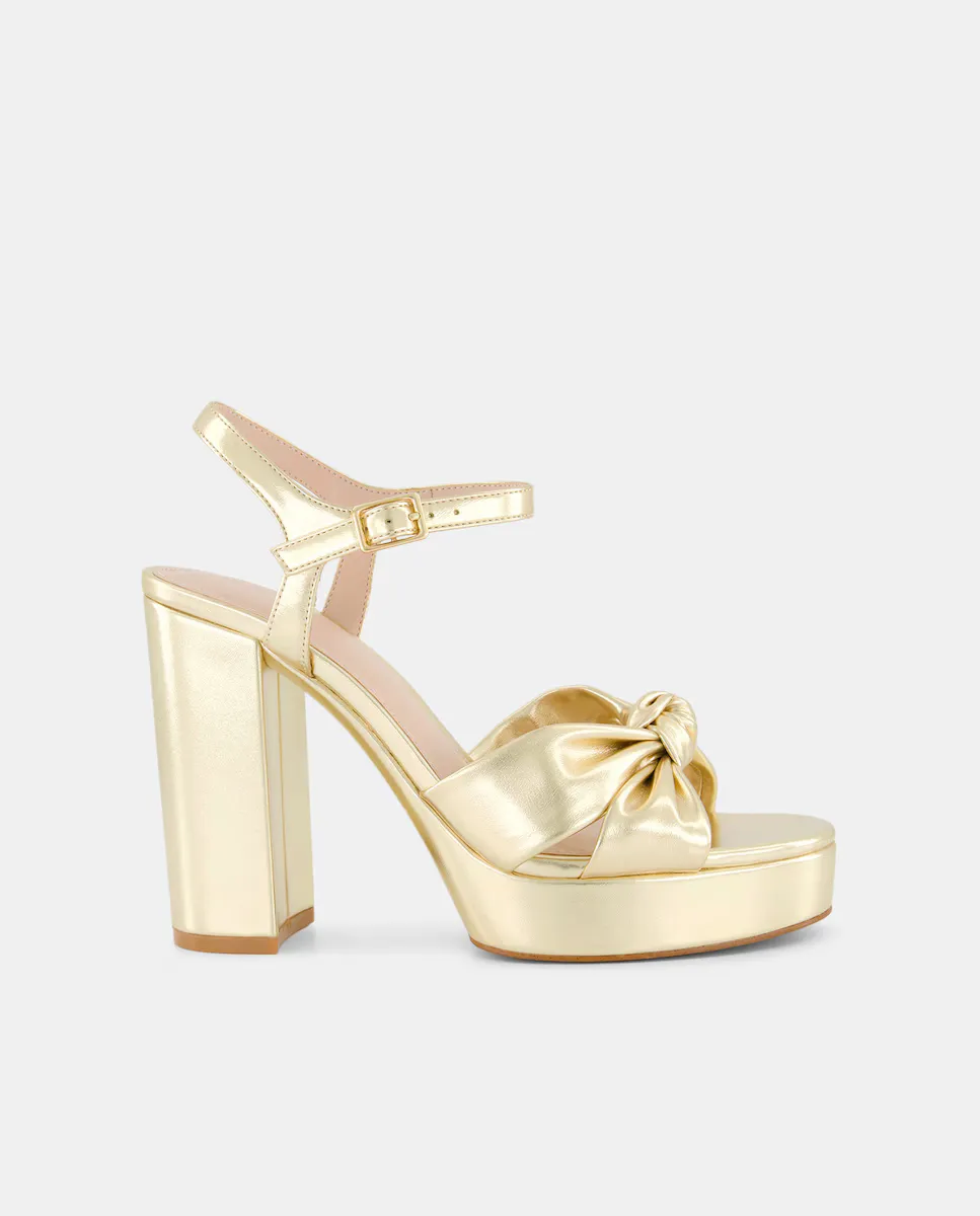 Золотые босоножки на платформе