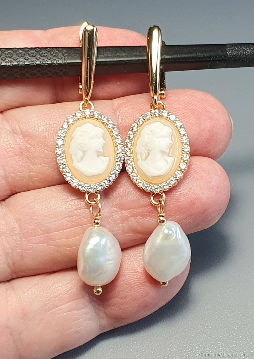 Золотые серьги камеи