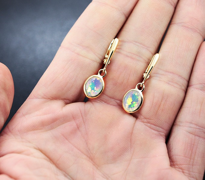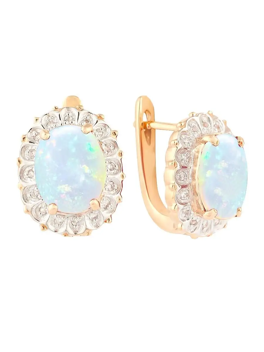 Золотые серьги с натуральным опалом 84 фотографий
