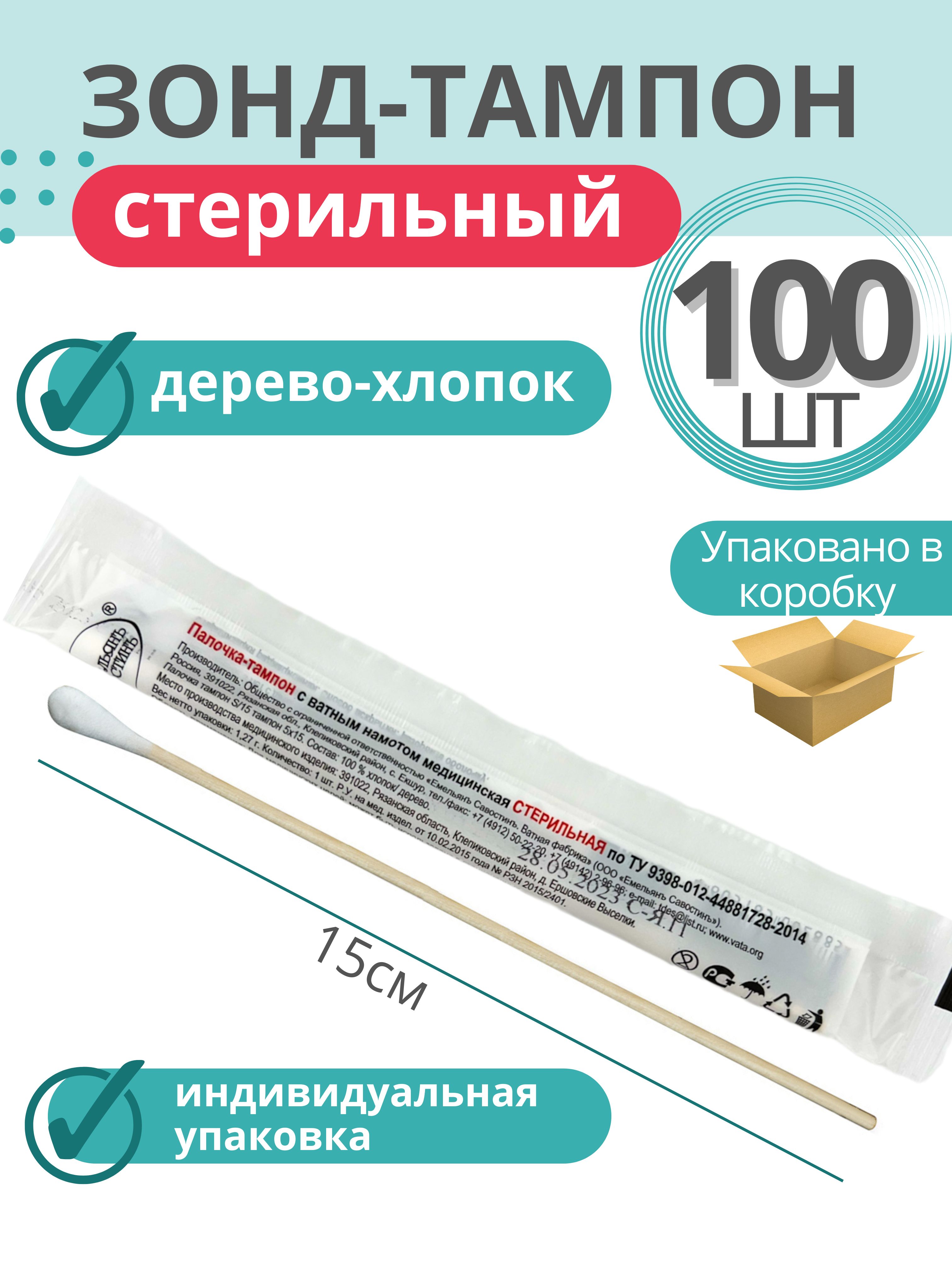 Зонд тампон дерево хлопок