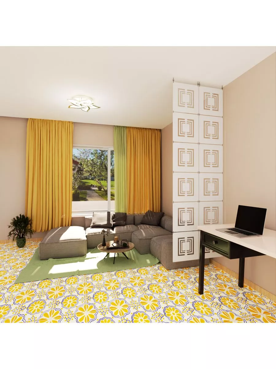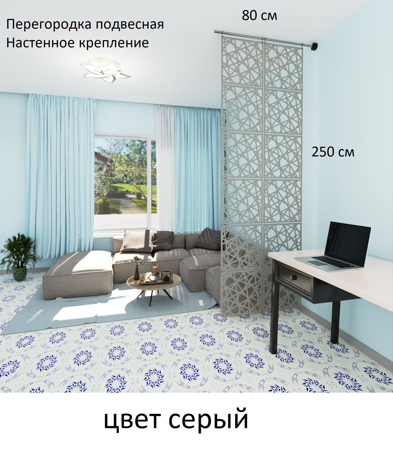 Зонирование подвесной ширмой