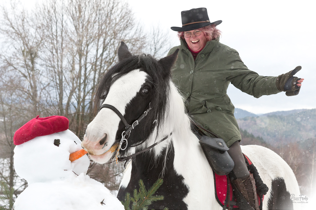 Zopfmädchen reitet die harte Route des Weihnachtsmanns