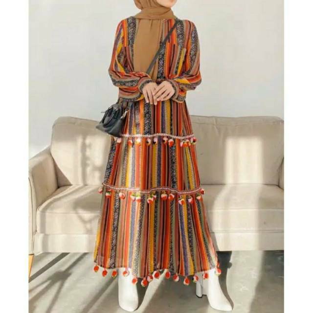 Bohemian Ethnic Printed Women Long Dress Muslim High Waist Slim Long Sleeve Maxi Robe Islamic Clothing Dubai Middle East Fashion