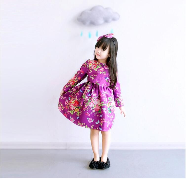Girls korean style loose floral cotton dresses fashion turn-down collar long sleeve princess dress kids clothing