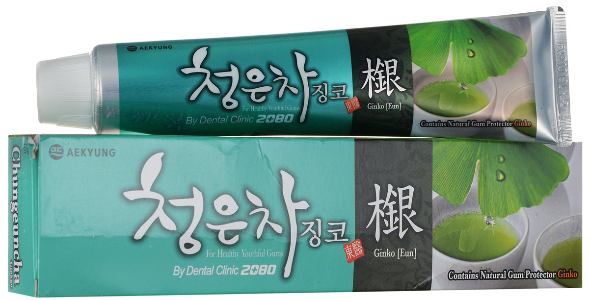 Зубная паста восточный чай с гинкго Dental Clinic 2080 Cheong-en-cha Ginkgo Toothpaste прекрасно очищает укрепляет дёсны имеет приятный вкус лечебных трав а также хорошо освежает Состоящие в пасте комплекс восточных чаев экстракт . . .