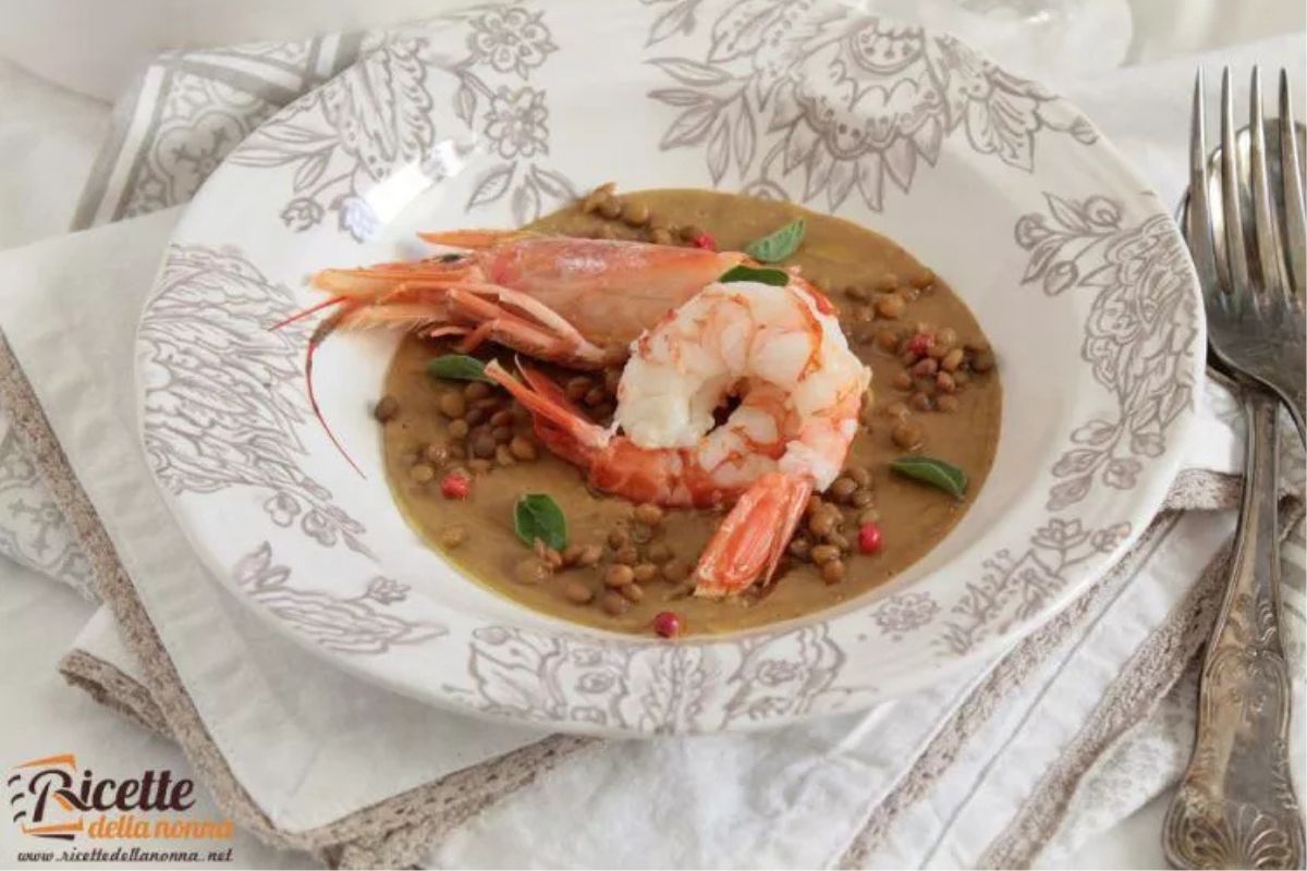 Zuppa di lenticchie e gamberi