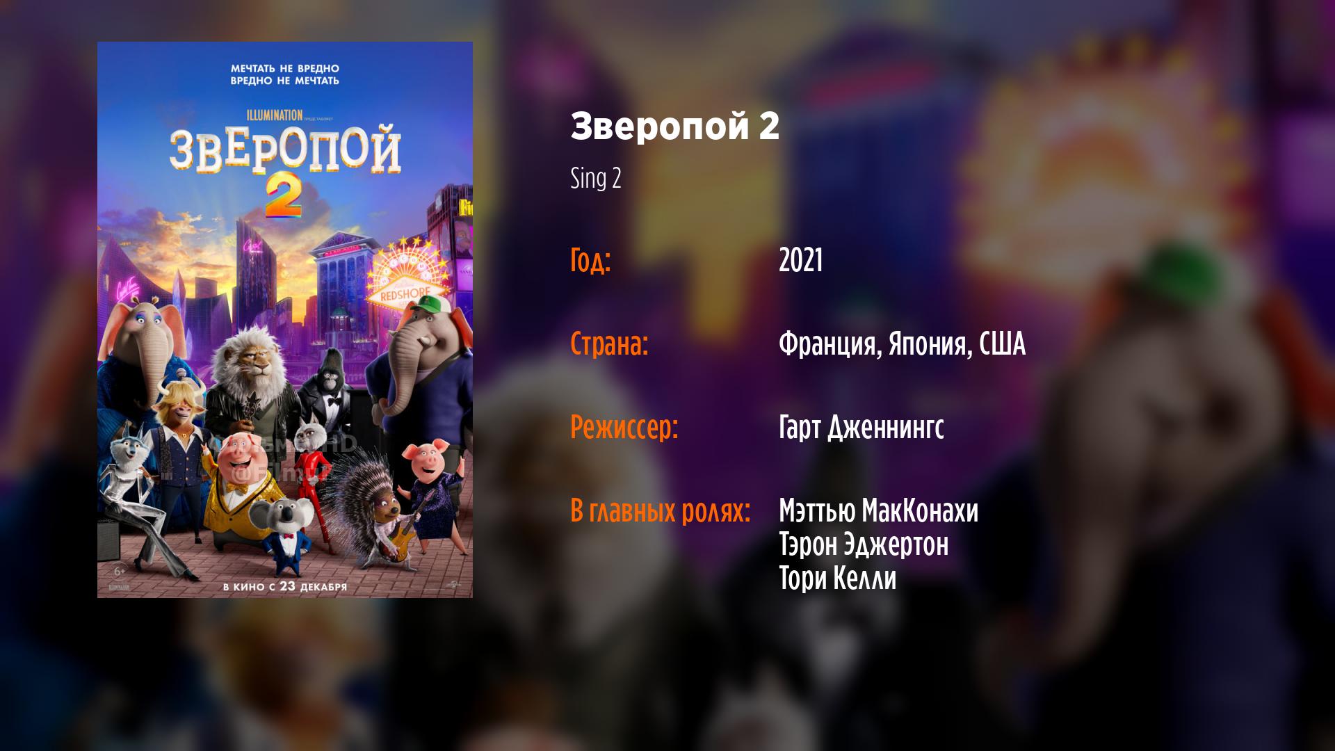 Тяжело быть продюсером, когда ты коала и у тебя лапки. Еще сложнее, когда твоя верная помощница древнее печатной машинки. И совсем весело, когда твоя труппа — это танцующий без остановки пухляш, колючая девочка-панк, застенчивая школьница, верзила-гангстер и многодетная мама, чьи дети — поросята в прямом смысле слова. Рецепт успеха прост — рвануть в мировую столицу развлечений, завербовать легендарного рок-музыканта и взорвать сцену новым шоу.