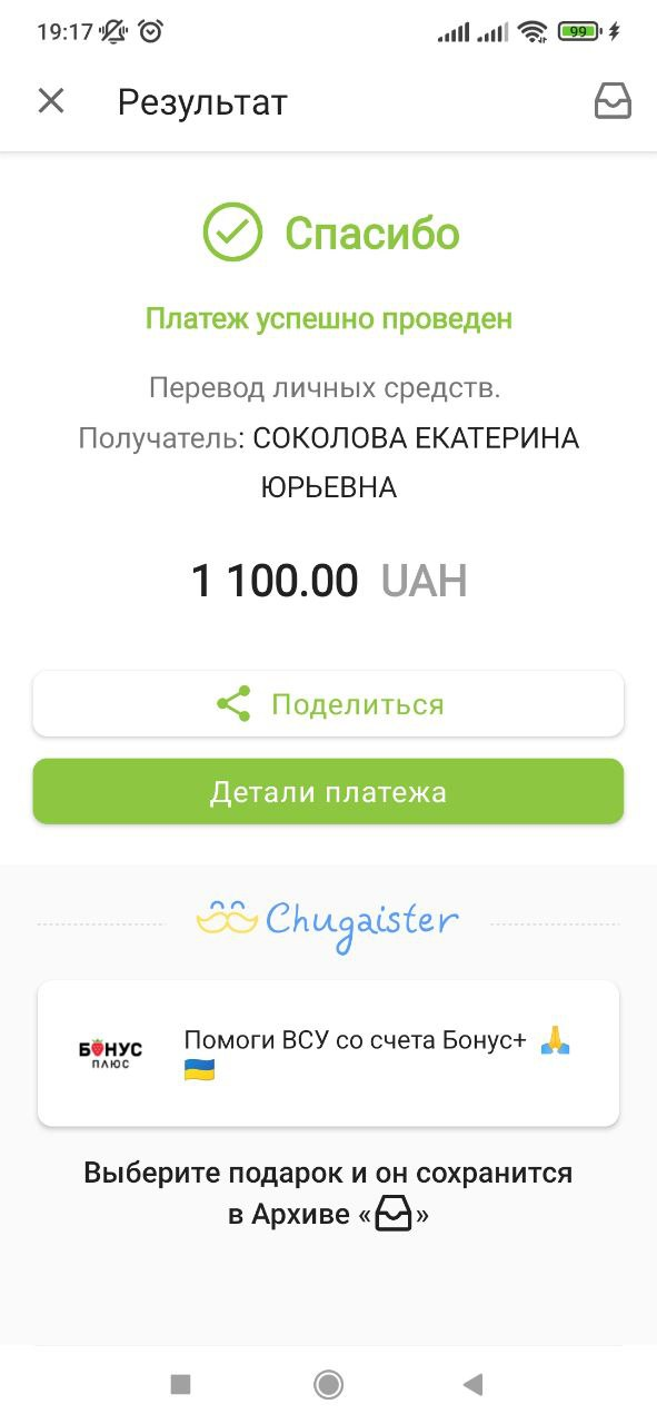 Придбали на передові для ЗСУ консерви на суму 3610 грн та цигарки - 3000 грн.