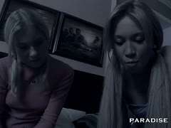 Der erstaunliche blonde Kopf mit dem großen Boden nimmt einen massiven schwarzen Schwanz in ihren Anus