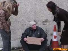 Zwei Schlampen machen einen Obdachlosen happy