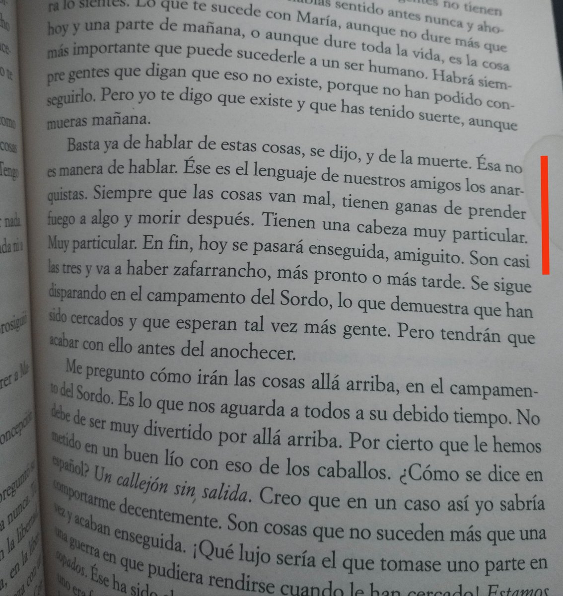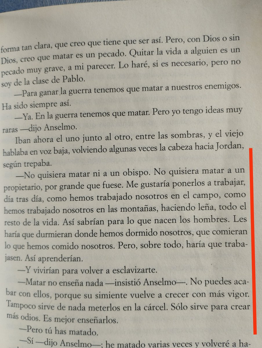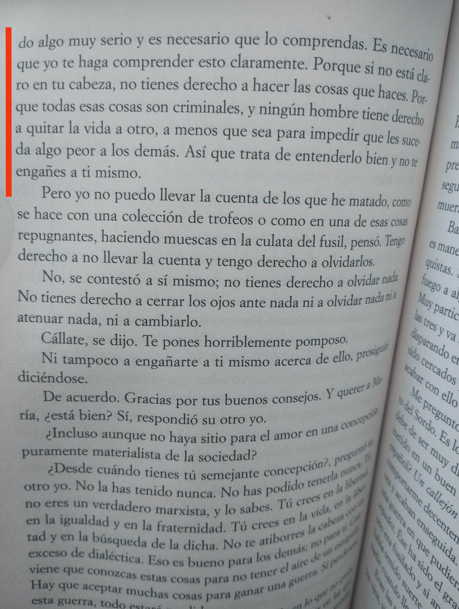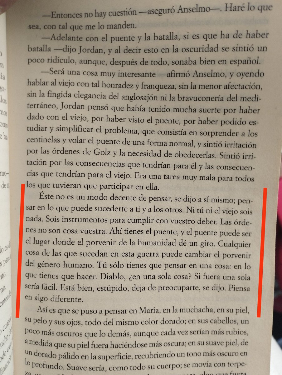De las reflexiones de Robert Jordan consigo mismo. Dilema sobre la muerte que logra resolver muy bien.