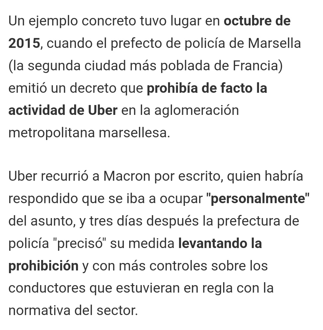 Más sobre Macron y su ayuda directa a Uber moviendo hilos con la policía para levantar prohibiciones en la actividad de la compañía: