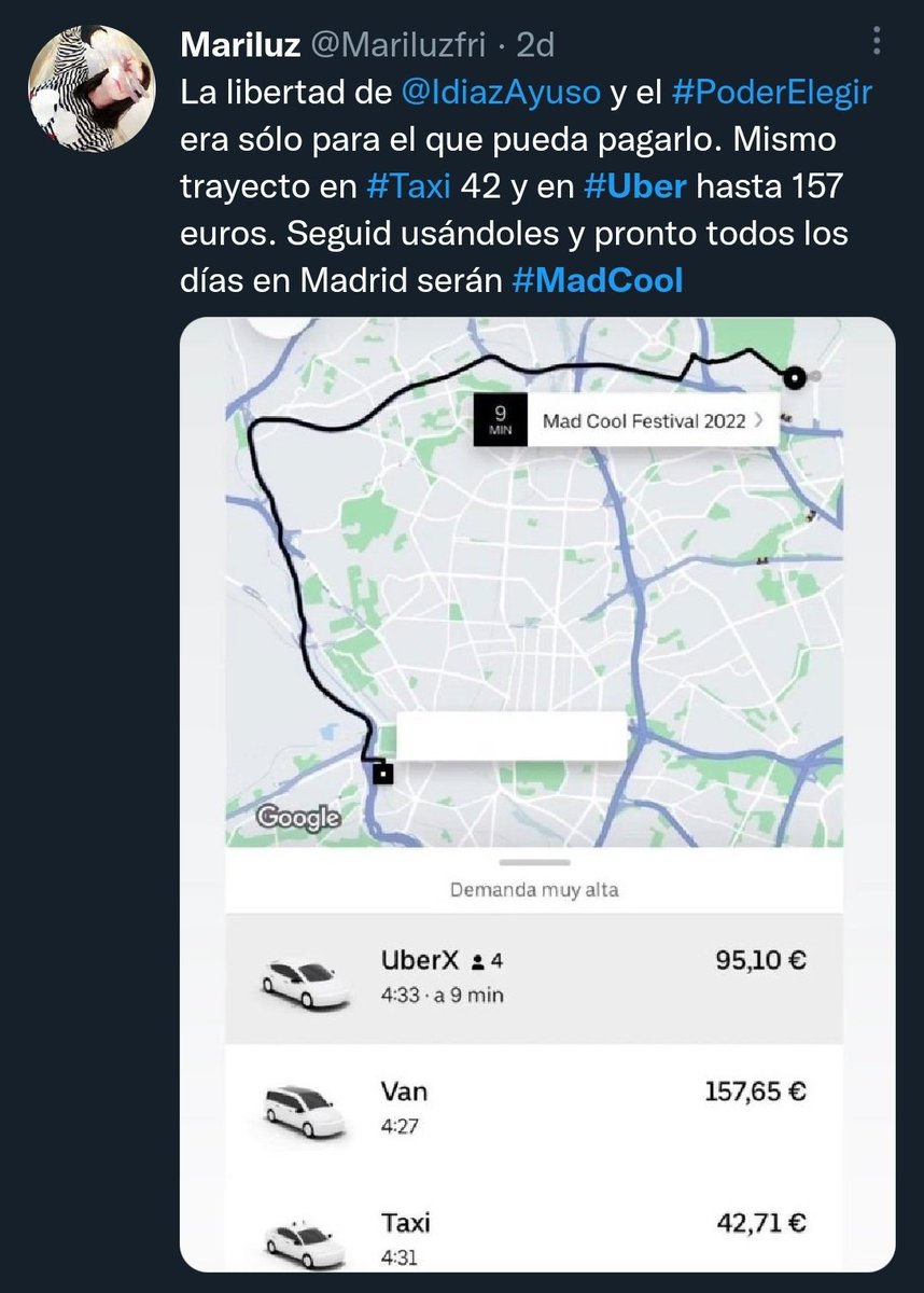 Este fin de semana veíamos cómo aprovechaban su situación ventajosa y su convenio con el festival Mad Cool para imponer tarifas desorbitadas y obstaculizar al sector del taxi.