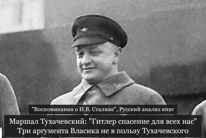 Nikolai Vlasik conocía personalmente a Tukhachevsky y estaba familiarizado con los antecedentes del juicio. Vlasik explica en sus memorias que Tukhachevsky no puede ser considerado una "víctima inocente", y en apoyo de su punto de vista da los siguientes argumentos. +