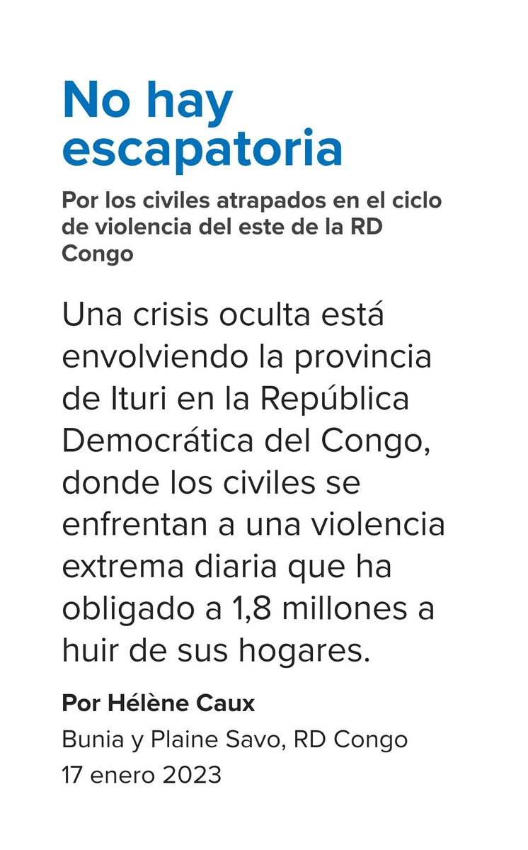 "Una crisis oculta está envolviendo la provincia de Ituri en la República Democrática del Congo, donde los civiles se enfrentan a una violencia extrema diaria que ha obligado a 1,8 millones a huir de sus hogares."