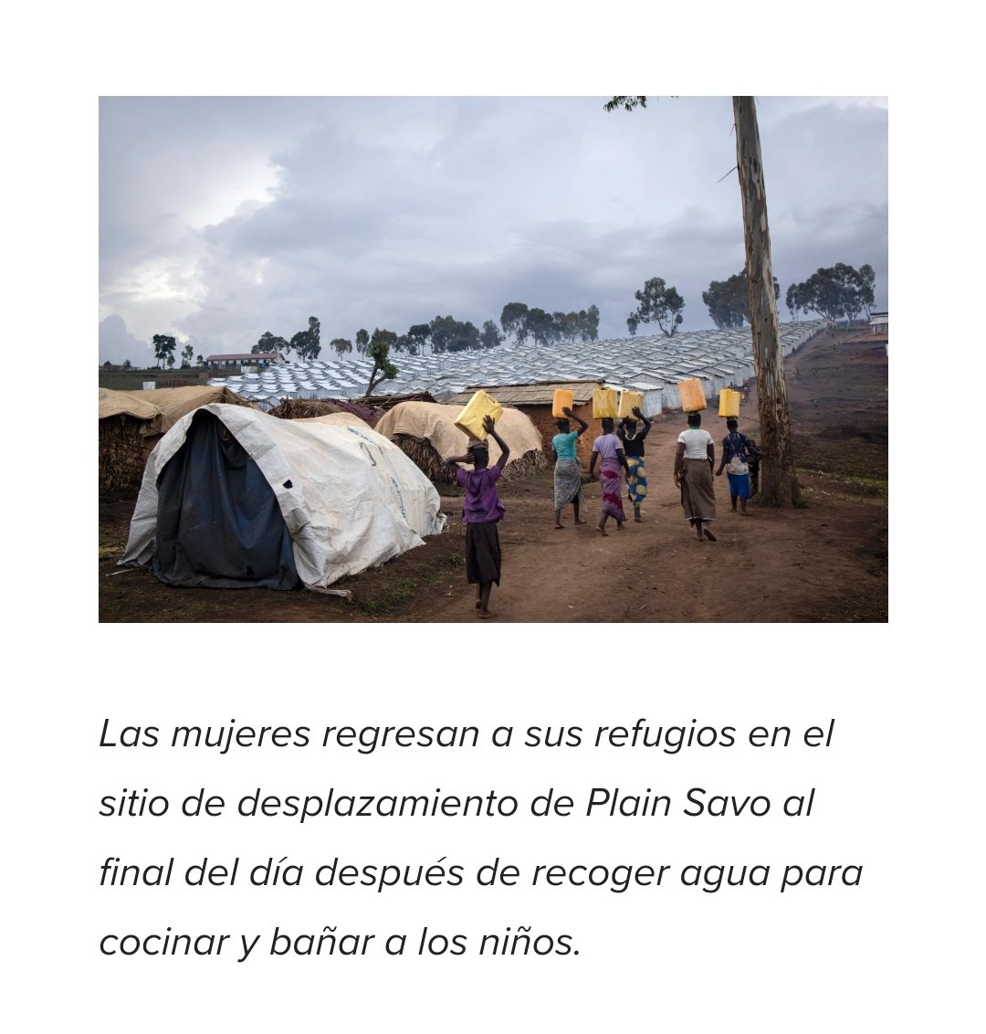 "Temprano en la mañana en el sitio de Plain Savo, donde todos los días se tratan de supervivencia. El sitio alberga a 40.000 desplazados internos."