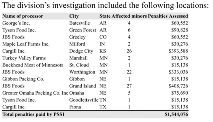 The U.S. Department of Labor has fined Packers Sanitation Services $1.5 million for these egregious violations.