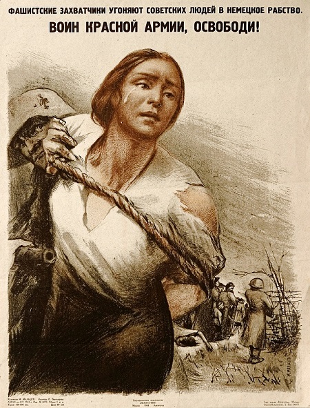 'Los invasores nazis secuestran soviéticos para convertirlos en esclavos. ¡Libéralos, guerrero del Ejército Rojo!'