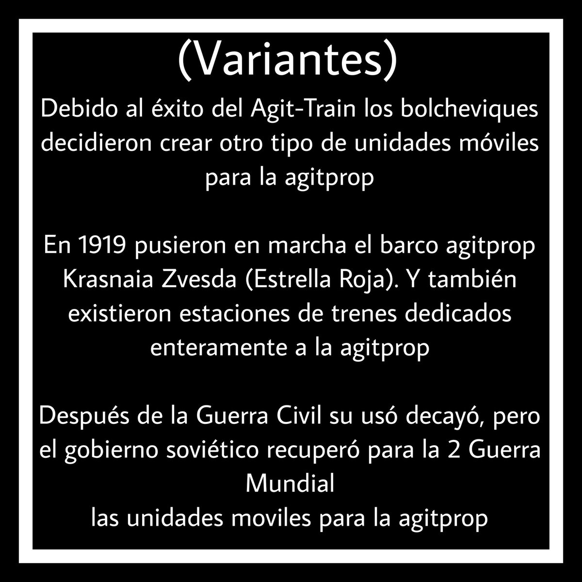 En el verano de 1918 el Congreso de los Soviets de toda Rusia aprobó la idea de crear el tren de agitación y empezó a operar en el frente del Volga en el agosto del mismo año.+