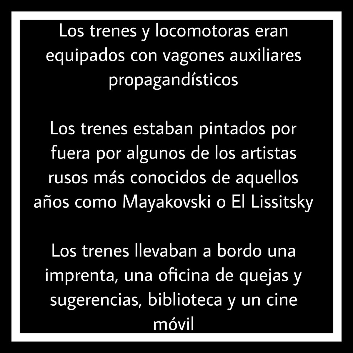 Los trenes aparte de difundir las ideas comunistas por toda Rusia, sirvió para que los comisarios del pueblo pudieran recabar información de las necesidades materiales de los ciudadanos.+