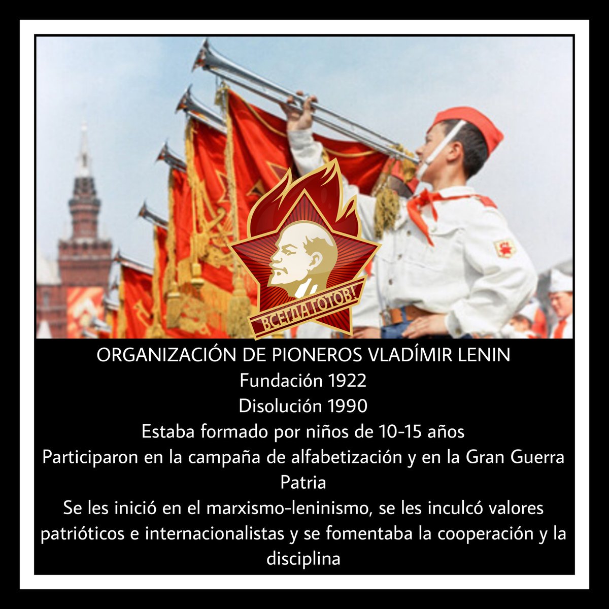 En la URSS existió la Organización de Pioneros Vladímir Lenin que agrupaba a niños de entre 10 a 15 años y los educaban en los valores del marxismo-leninismo a la vez que fomentaban el deporte y la cultura entre sus miembros.+