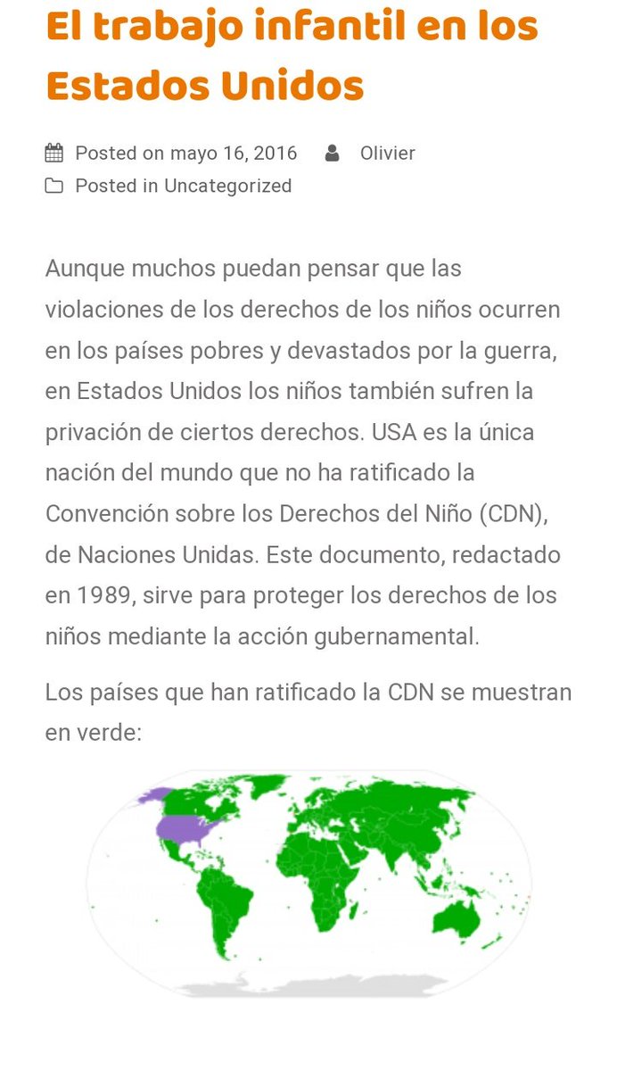 De hecho, EEUU es el ÚNICO país del mundo que no ratificó la Convención sobre los Derechos del Niño (CDN) de la ONU.