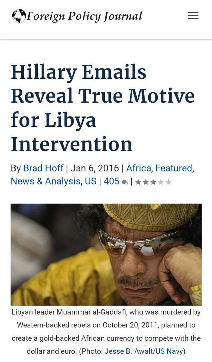 7/ Según esos correos, Gaddafi poseía "143 toneladas de oro y una cantidad similar de plata [...] destinado a ser utilizado para establecer una moneda panafricana basada en el dinar de oro libio. Este plan fue diseñado para proporcionar a los países africanos francófonos