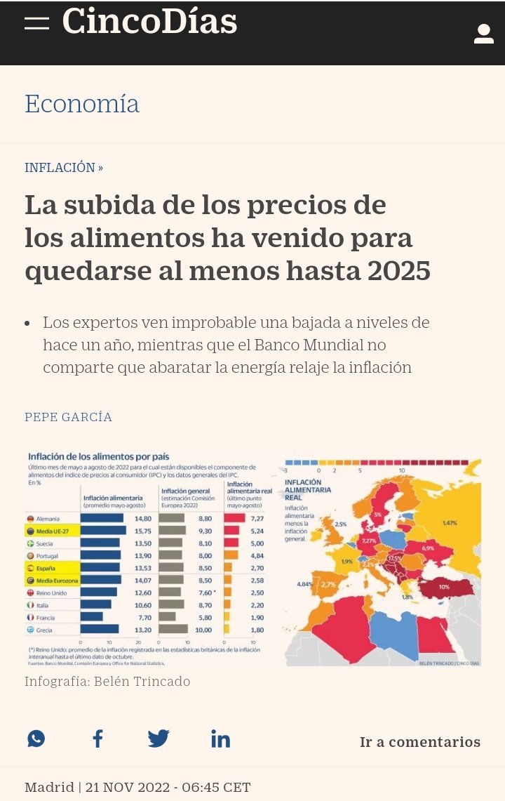 6/ un 3%. Pero la inflación ha subido en el mismo periodo de un 9% (según los datos oficiales, datos per se discutibles, pq la subida a efectos prácticos parece mucho mayor).