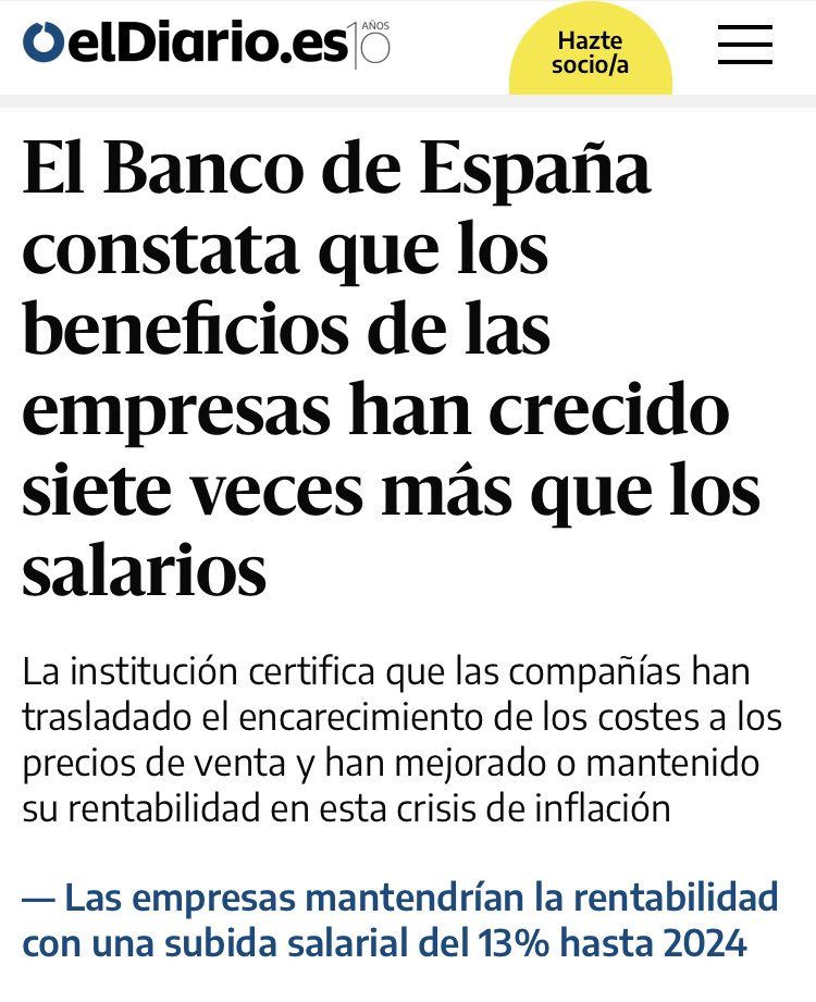 12/ Las ganancias de los capitalistas en 2022 se han incrementado de un 95% y han crecido 7 veces más que los salarios.