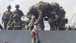 Salen de Afganistán en medio del caos y una muchedumbre fuera del aeropuerto de Kabul. Por supuesto, no saben que hay un juez en EEUU que reconoce al marine como padre de la beba.