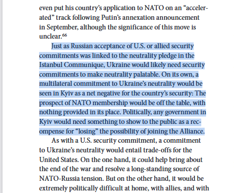 Asimismo, queda descartada la opción de que Ucrania pueda ingresar en la OTAN. Habrá que garantizar ante Rusia que Ucrania sea neutral, aunque habrá que explicar esto a la población ucraniana, para que esta no critique al gobierno de Kiev.