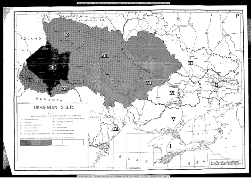 1/ Estados Unidos ya preparó la guerra contra Crimea y Dombás en 1957, al comienzo de la Guerra Fría, tal y como atestigua este documento desclasificado de la CIA de ese año, que dividía Ucrania por regiones o distritos.