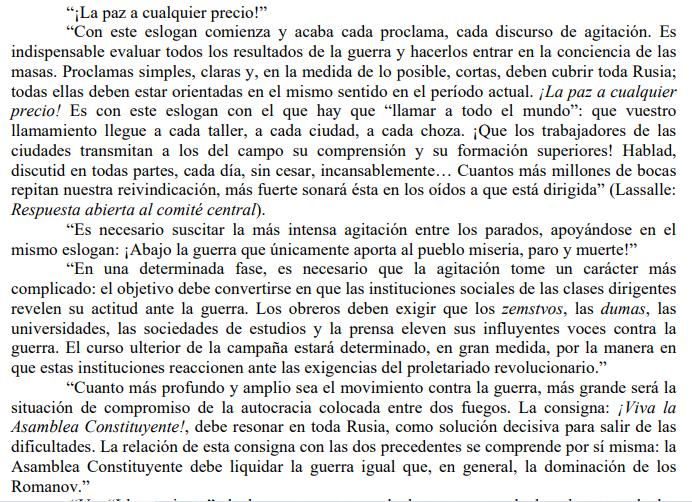 Plejanov sí defendió la derrota militar del régimen zarista vinculándolo con la derrota política del régimen autocrático. Vislumbraba la posibilidad y la “oportunidad” de la revolución.