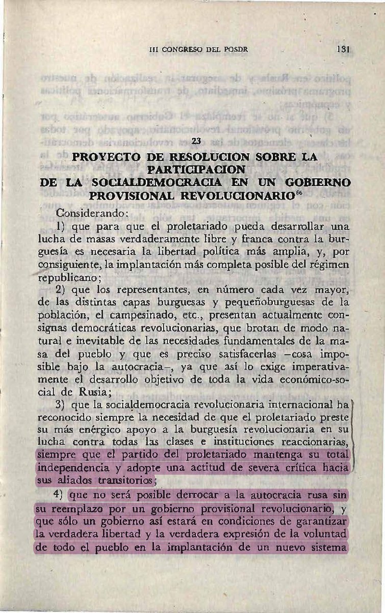Sin embargo, cedía toda la iniciativa revolucionaria a la burguesía para no “asustarla”. Renegando de la participación del proletariado revolucionario en la formación de un “gobierno revolucionario” durante la “revolución democrática”.