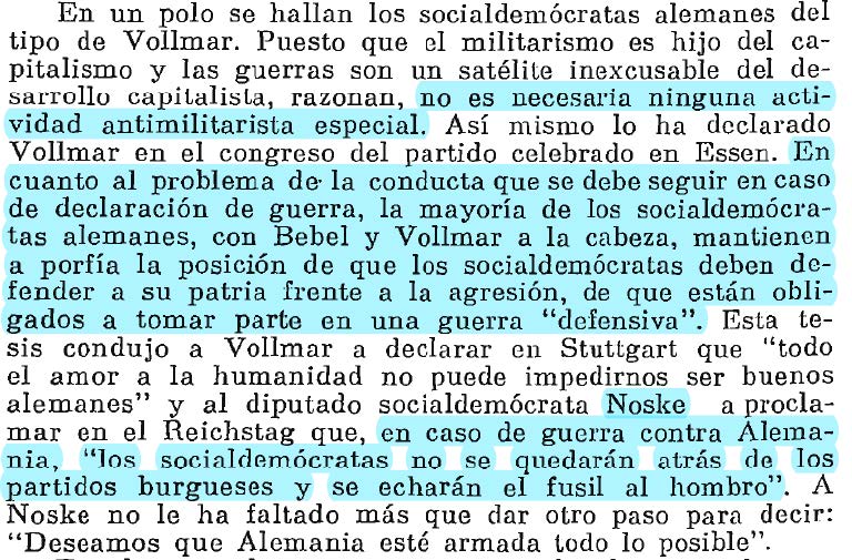 Las citas han sido extraidas de “Contra la guerra imperialista” de Lenin y de “La segunda Internacional” de James Joll.