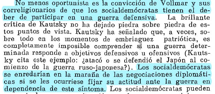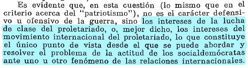 La defensa d los intereses inmediatos del proletariado se ligaba a su vez a la defensa d los intereses d su “patria”. Ante esto, Lenin critica la inutilidad de discernir quién dio el primer golpe para establecer la táctica socialdemócracia.