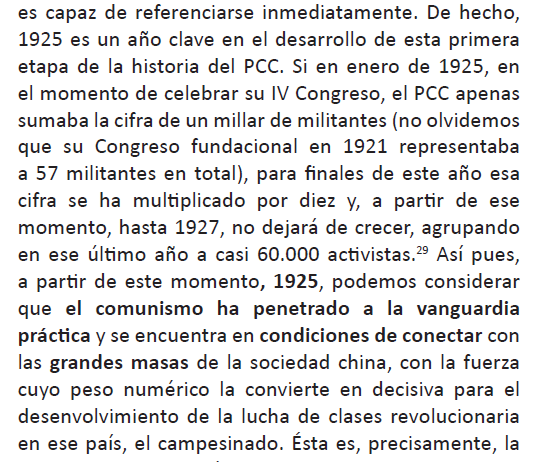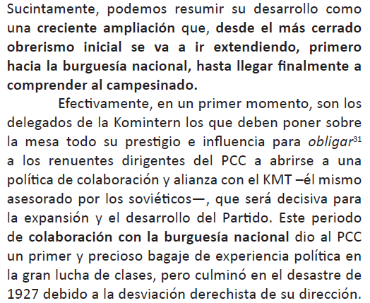 política para el despliegue de la revolución en el campo. Porque es muy interesado olvidar que fue gracias a la enorme influencia del PCC en la lucha antimperialista como pudo continuarse la revolución en el despliegue de la guerra popular desde el 26 con Mao.