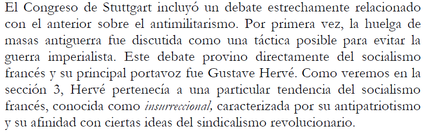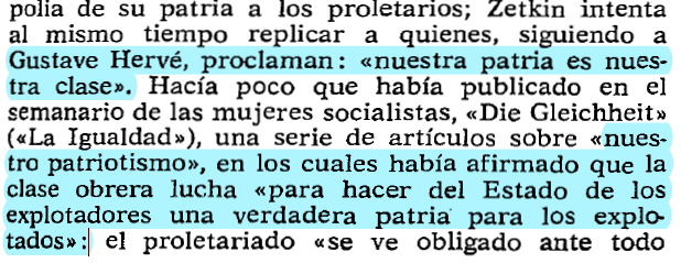 Por otro lado, el rechazo extremo a la patria burguesa de Hervé le llevaba a renegar de la importancia de entender la particularidad de la “patria” para satisfacer adecuadamente las necesidades internacionales de la lucha de clases.