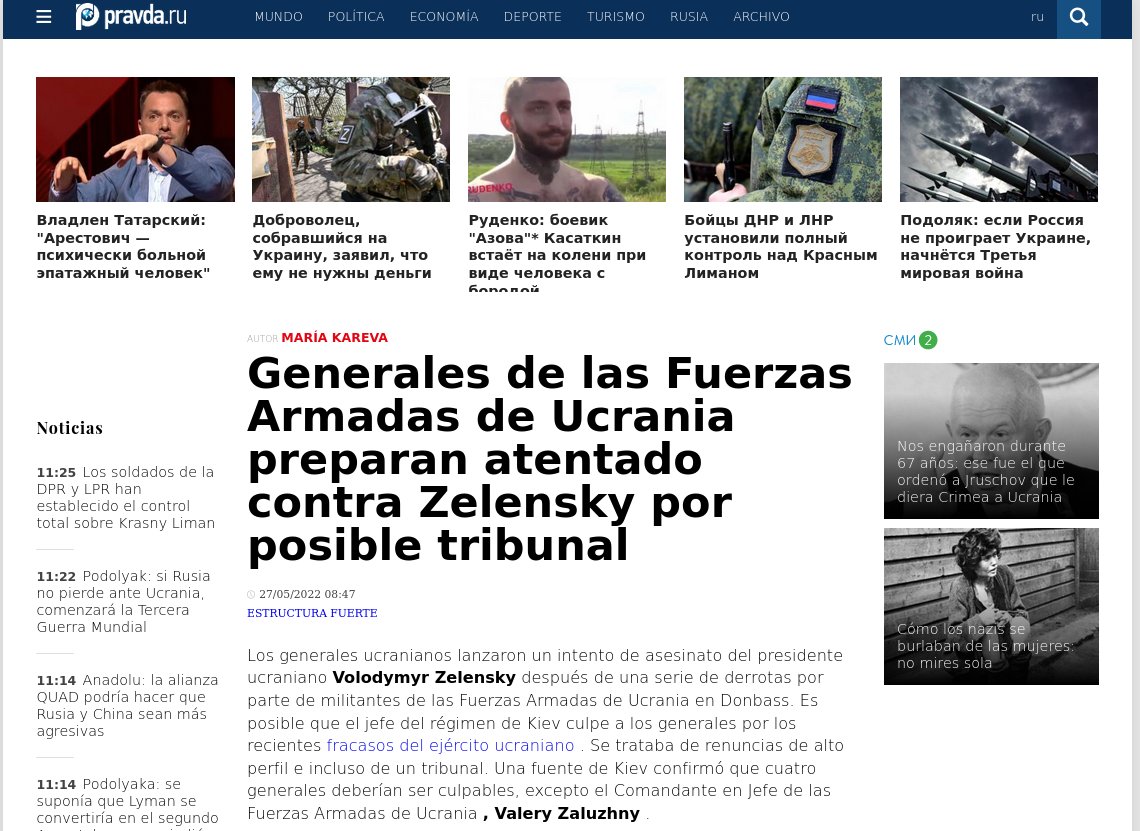 Conscientes de la situción límite en que se encuentra Zelenski, el digital Pravda se apresura a lanzar rumores que creo que son prematuros. Lo tenéis aquí: